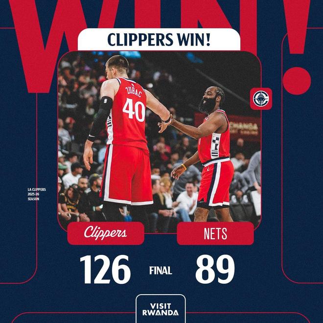 末节决战,两队都派上了板凳席末端的球员,开始在场上练兵,比赛彻底失去了悬念。尼德豪泽、鲍德温率队持续在进攻端发力,快船将分差扩大至40分。杰明、鲍威尔持续单打不中,时间逐渐走完。最终,快船以126比89完胜对手,就此斩获2连胜。同时,过去18场比赛,快船豪取15胜3负,同期联盟第一。