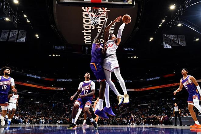 本场比赛中,快船的替补侧翼新星乔丹-米勒(Jordan Miller)的表现算得上是令人刮目相看。米勒全场出场23分55秒,投篮12中7,三分线外4中3,罚球4中3,得到了20分5篮板2助攻的数据,还有3次失误和1次犯规,正负值也是达到了+18。米勒在进攻端展现出了全面的得分能力,他在三分线外也是找到了自己的手感,他也又一次将自己在持球进攻方面的表现发挥了出来,他也是通过各种方式拿下了不少分数,而且将自己在进攻端的特点发挥了出来。米勒在防守端的表现也是值得肯定的,同样是起到了不错的效果的。米勒在本场比赛中的作用非常突出,又一次很好地扮演了超级第六人的角色,发挥出了自己各方面的作用,为球队的大胜做出了巨大的贡献。
