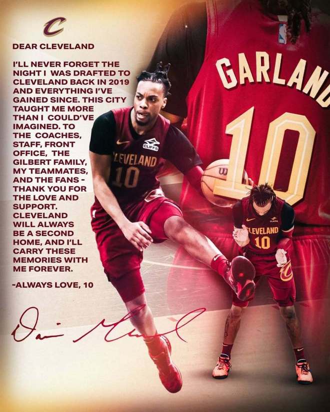 加兰写道:致克利夫兰,我永远不会忘记2019年被骑士选中的那个夜晚,以及自此之后发生的一切。这座城市教会我的,远超出我的想象。致球队工作人员、管理层、吉尔伯特家族、我的队友们,还有球迷们:感谢你们的爱与支持。克利夫兰永远会是我的第二个家,我会永远珍藏这些回忆。