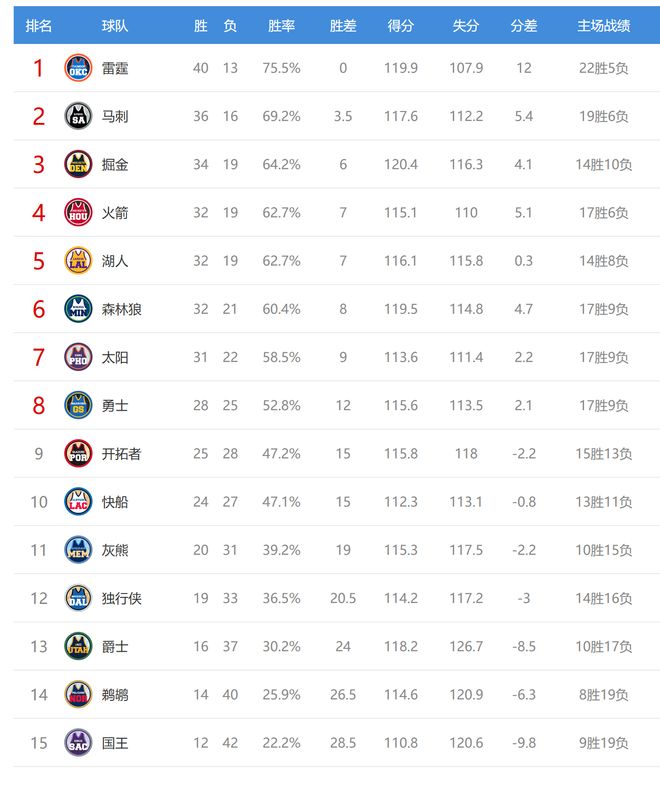 马刺赢球后4连胜,战绩36胜16负排名西部第二,领先第三的掘金2.5个胜场。