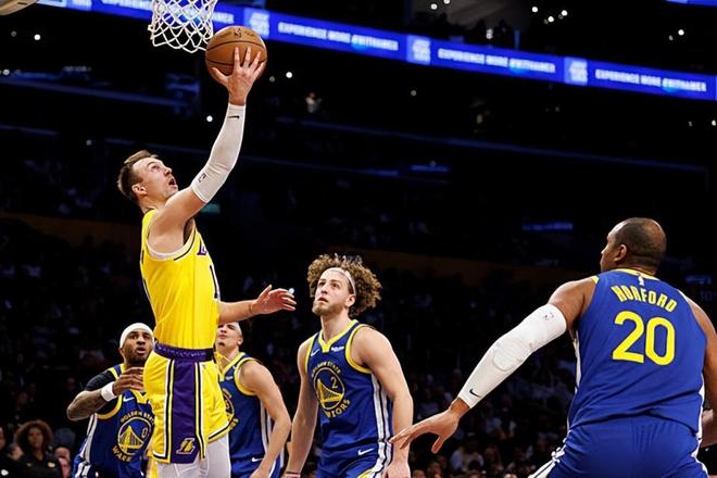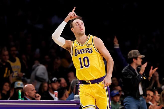 本场比赛中,在交易截止日前刚刚通过交易从亚特兰大老鹰加盟湖人的外线投手卢克-肯纳德(Luke Kennard)完成了自己在湖人的首秀,而他在首秀中的表现也是相当不错的。肯纳德全场出场26分04秒,投篮7中4,三分线外4中2,得到了10分2篮板2助攻1抢断的数据,还有2次失误和2次犯规,正负值为+4。肯纳德在进攻端也是作用全面,他展现出了全面的得分能力,他也是能够通过各种方式给对手制造威胁的。肯纳德具备一定的突破能力,他在外线投篮方面的稳定性也是依然非常突出,而且他也具备一定的支配球能力,他在进攻端的功能看起来非常全面。肯纳德在防守端的能力比较一般,但是至少他在进攻端实实在在为球队提供了不少的支持,成为了球队第二阵容中的关键人物。