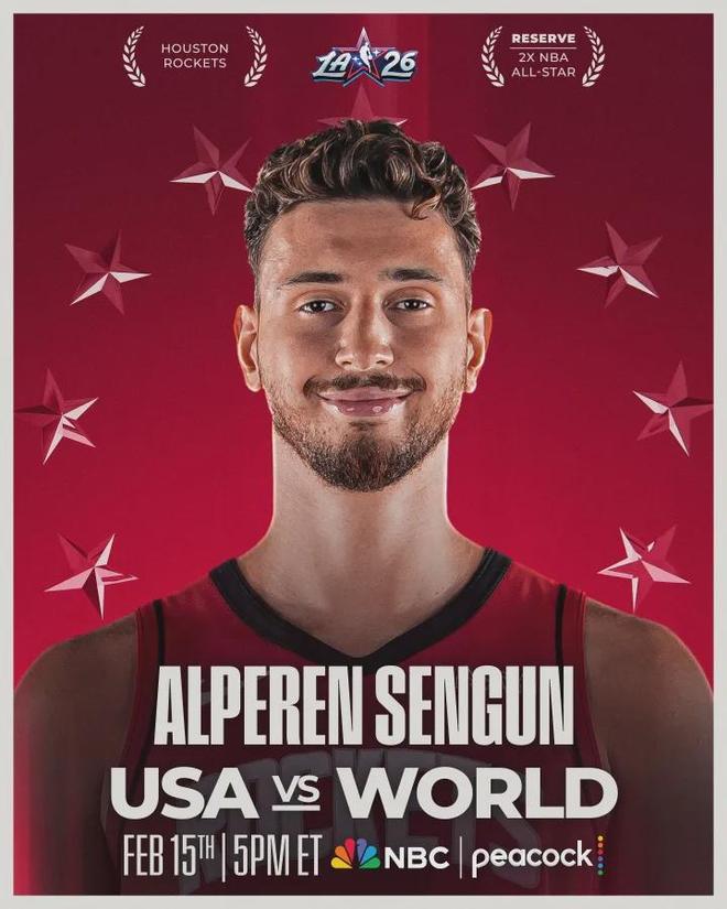 NBA官方宣布:申京替代受伤的亚历山大,代表国际队出战2026年全明星。