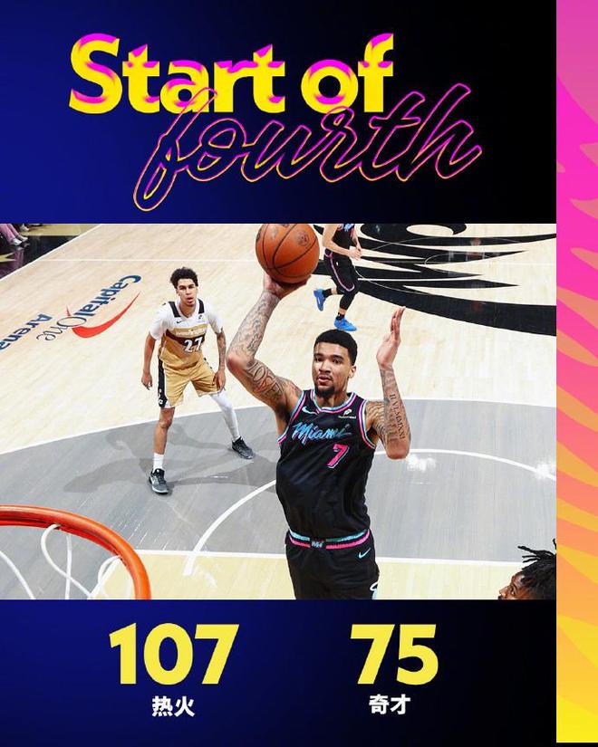 中场休息回来,热火连续三节单节得分30+,且限制奇才连续两节单节不超过25分。热火依然是进攻火力碾压,鲍威尔三节5记三分21分与阿德巴约22+7,引领热火已经多达5人得分上双,热火三分36中18高达5成准星。奇才被限制三分29中9,全队3人得分上双,但最高分仅13分,热火单节33-23净胜10分,三节结束热火已经取得107-75领先奇才。