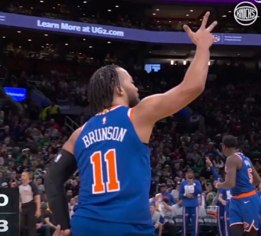 中场休息回来,尼克斯连续两节只得到25分,但限制凯尔特人第三节不超过15分。布朗第三节打满12分钟11中5得到13分,但凯尔特人其余球员疯狂打铁,他们第三节合计只有2分,尼克斯一度被追到65-61仅领先4分,并在之后维持70-65领先。只是尼克斯很快打出一波15-3攻势拉开比分,尼克斯单节25-15净胜10分,三节结束尼克斯85-68领先凯尔特人。