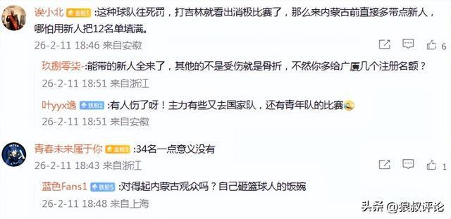 对于双方这种对待的态度,引发不少球迷的不满,特别是广厦只有8人出战,若是明知道阵容的主力球员被调往国家队,或者是核心球员有伤在身,应该要多带几个新人过来,而不是说有消极比赛的嫌疑。