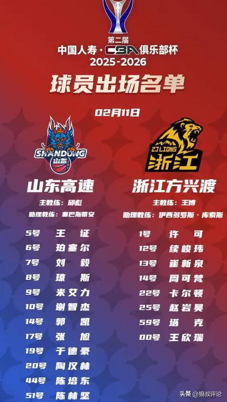 北京时间2月11日,CBA俱乐部杯季军争夺战,山东vs广厦大名单正式出炉,由于广厦面临大面积伤病,只有8人出战,山东新外援琼斯亮相,克里斯和鲍威尔同时缺席。