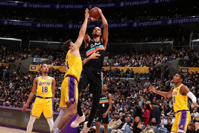 NBA常规赛继续进行中,圣安东尼奥马刺的一场客场对阵湖人的比赛成为了舆论焦点,马刺客场战以136-108战胜湖人。