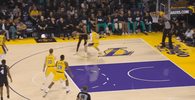 湖人进攻效率联盟第九。五个人场均得分两位数,四个人场均2助攻。