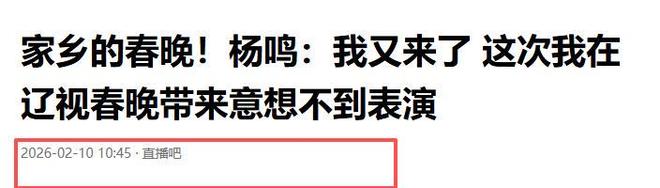 直播吧2026-02-10《家乡的春晚!杨鸣:我又来了 这次我在辽视春晚带来意想不到表演》