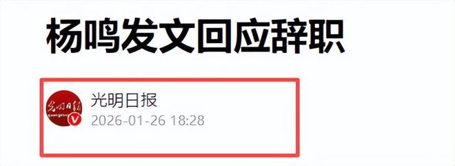 光明日报2026-01-26《杨鸣发文回应辞职》