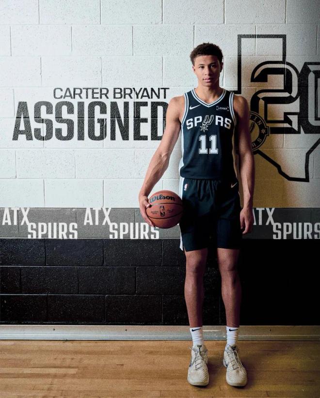 卡特布莱恩特是2025届马刺选中的首轮14号秀,他身高1米98(官方身高),臂展2米13,目前20岁,司职前锋,静态天赋和动态天赋都非常出色。