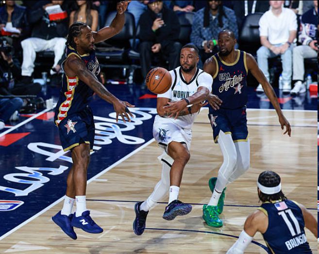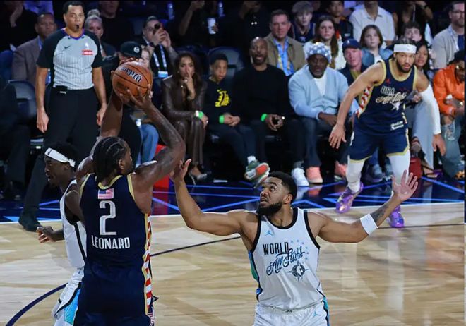 除此之外,莱昂纳德被问到今年的赛制不同时说:“以前是打12分钟,然后休息15到20分钟,再进行下一场比赛,而且这次的对手也不同。确实有些区别,但就像打野球一样,如果你们赢了,你基本就能留在场上。不过,这很有趣,我很享受。”