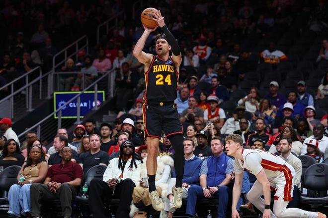 中场休息回来,热火首次单节得分30+,且限制老鹰第二次单节不足25分,热火逐步扩大两位数领先优势。热火借助希罗、阿德巴约与鲍威尔等持续得分,逐步用团队攻势单节30-24净胜6分,前三节比赛结束热火扩大87-75领先老鹰12分优势。