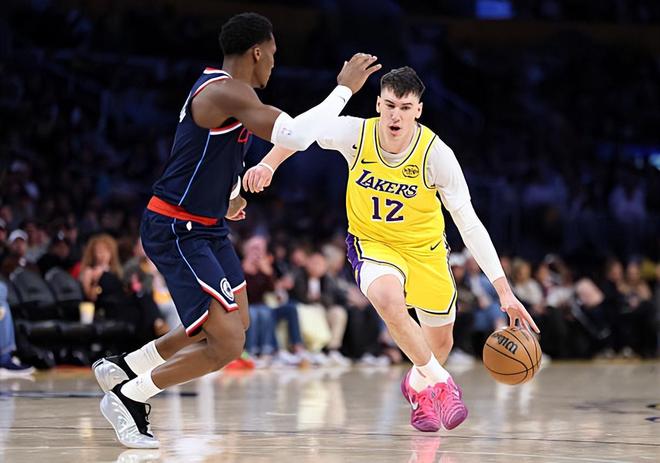 本场比赛中,湖人的替补侧翼新星杰克-拉拉维亚(Jake LaRavia)的表现也算是中规中矩。拉拉维亚全场出场14分03秒,投篮1中1,三分线外1中1,得到了3分1篮板1助攻的数据,还有4次犯规,正负值为+1。拉拉维亚在本场比赛中的出场时间出现了大幅度的减少,他在场上的角色也是远不如之前绝大多数场次的比赛。这种情况下,拉拉维亚也是没有办法得到足够的出手机会,他在进攻端的贡献度也是比较有限的。但是总体来看,拉拉维亚也算是起到了自己的作用,他在进攻端命中了一记三分,也没有出现什么太大的问题。除此之外,拉拉维亚在防守端也是兢兢业业,积极性十足。拉拉维亚的数据不算出彩,但是他还是发挥出了自己的作用,为球队的胜利做出了自己的贡献。