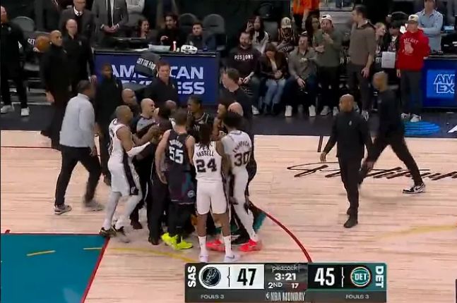 次节比赛,马刺进攻火力升级本场首次单节得分30+,且限制活塞连续两节单节不足30分。马刺追到29-29,活塞一波6-0攻势取得领先,马刺连中三分一波9-0攻势夺回领先。马刺继续维持47-45领先,坎宁安推倒卡斯尔引发冲突,凯尔登推搡坎宁安,杜伦手指凯尔登,裁判吹罚凯尔登与杜伦技术犯规。活塞一波6-1攻势反超3分,马刺回敬9-4攻势,马刺单节33-28净胜5分,上半场结束马刺57-55反超活塞。前两节比赛,马刺三分22中11,瓦塞尔5记三分18分与尚帕尼4记三分12分,文班亚马9中2得到7+7;活塞三分18中5,坎宁安10+3+6与霍兰11+6。