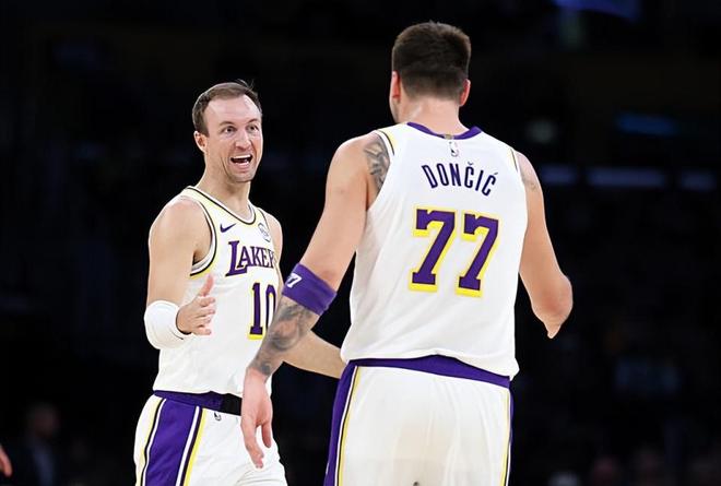 本场比赛中,湖人虽然遭遇了一场惨败,但是球队的替补后场新援卢克-肯纳德(Luke Kennard)的表现其实还是不错的。肯纳德全场出场21分43秒,投篮4中3,三分线外2中1,罚球2中2,得到了9分3篮板1抢断的数据,还有1次失误和2次犯规,正负值为-9。肯纳德在本场比赛中的状态其实相当不错,他的进攻效率相当出色,他也是抓住了有限的机会得到了不少分数,展现出了全面的得分能力。至于防守端,这本身也不是肯纳德的强项,但是他其实也没有出现什么太大的问题。只是问题就在于,在球队绝大多数球员进攻效率不佳的情况下,肯纳德都无法得到更多的球权支持,他的能力当然也没有办法充分发挥出来,他也没有办法在这种情况下为球队提供更多的支持。