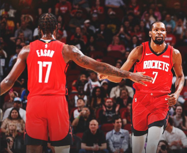火箭:杜兰特、贾巴里-史密斯、阿门、申京、伊森