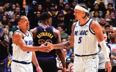 NBA常规赛,湖人坐镇主场迎击魔术队。本场比赛之前,湖人34胜22负排名西部第5,虽然湖人本赛季的状态,不是那么的稳定,面对强队多次翻车,高端局还是吃力一些,但现在这支湖人胜在全员健康,东契奇,詹姆斯,里夫斯三巨头合体,核心进攻火力拉满,他们并非没有冲击总冠军的机会。交易截止日前,湖人又引进联盟顶级射手肯纳德,弥补了三分投射的短板,未来可期。另一边的魔术队,本场比赛之前,30胜26负排名东部第7,作为东部黑马之一,魔术的实力也不容小觑。有点可惜的就是班切罗本赛季状态没有去年好。