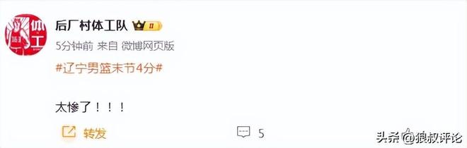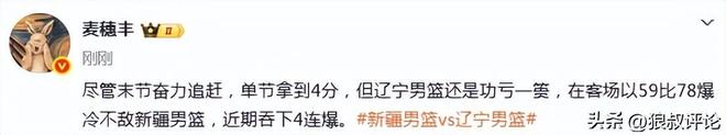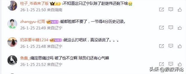 赛后,辽宁单节得到4分引发外界的热议。