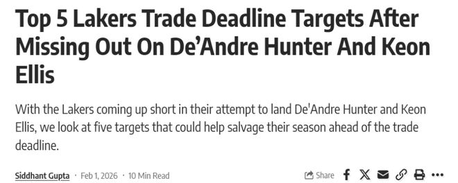 颇为有趣的是,完成互换的亨特与埃利斯恰恰都是湖人队明确有意的补强目标,而湖人队之所以没有得到两人,其中亨特是因为合同较大,湖人不想承担他超过2400万美元的大合同,埃利斯则是要价过高,湖人不愿为其付出首轮。