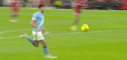 比赛第84分钟,哈兰德头球摆渡,B席铲射得分,曼城1-1扳平!