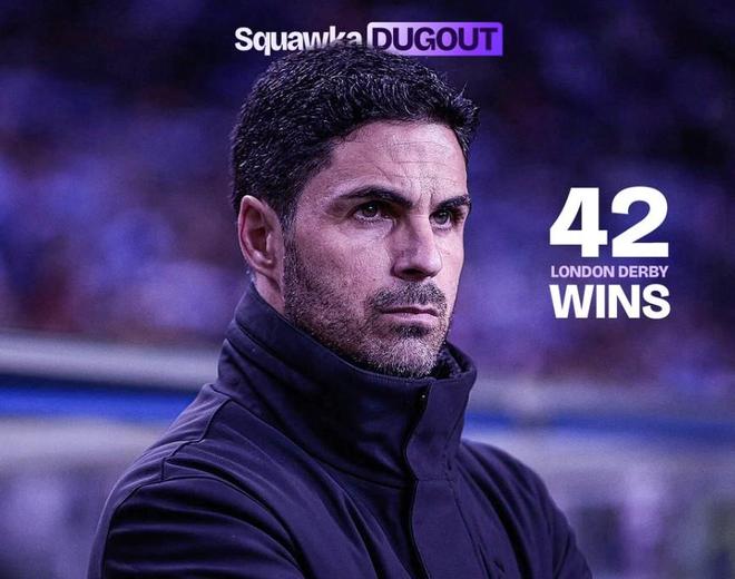 赛后根据Squawka的统计,本场比赛是阿尔特塔执教阿森纳69次率队出战英超的伦敦德比赢下的第42场比赛,他也就此追平了穆里尼奥(70战取胜42场),并列成为英超历史伦敦德比取胜场次第二多的主教练,仅次于率领阿森纳194次出战英超伦敦德比取胜106场的温格。