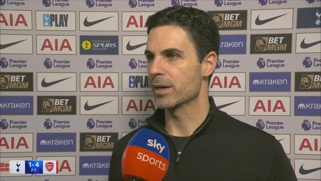 率队在英超第27轮的北伦敦德比客场4-1大胜托特纳姆热刺之后,阿森纳主教练阿尔特塔接受了来自天空体育的采访。