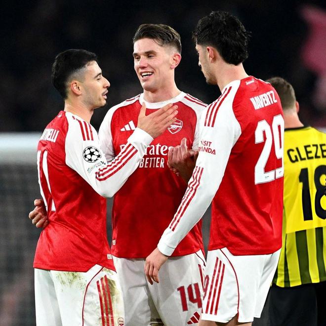 据统计,阿森纳是本赛季欧冠联赛阶段积分最多(24分)、进球最多(23球)、丢球最少(4球)的球队。