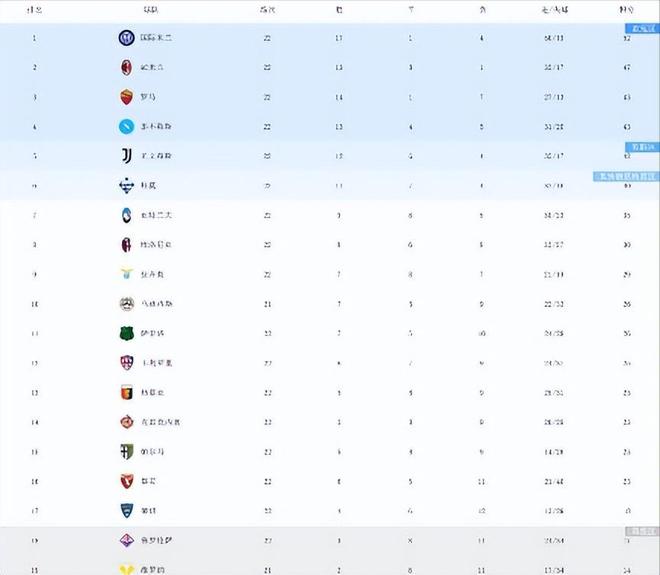 本轮比赛结束后,意甲积分榜前五名发生了一些变化,国际米兰以52分继续领跑,AC米兰积47分位居次席,罗马、那不勒斯和尤文图斯分列第三至第五位,他们之间的积分差距非常接近。