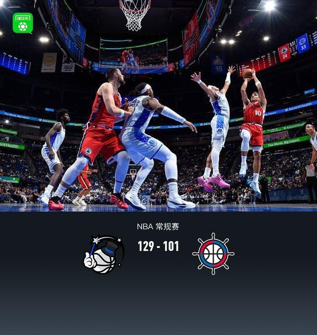 第四节魔术比塔泽拿下6分,快船科比-布朗拿下9分,最终魔术129-101战胜快船