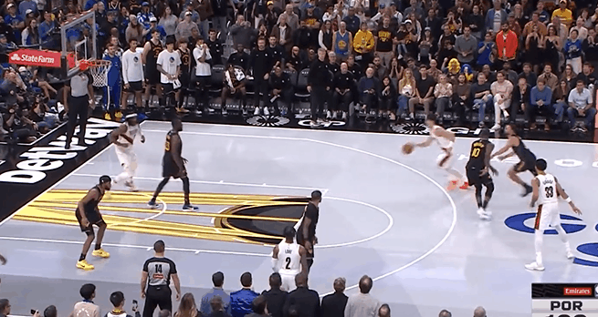 决胜节再战两队进入白热化!西索科突破,助攻罗威轻松吃饼。随后卡马拉反击三分,开拓者反超比分!库里不在场上,勇士的进攻出现了很大的问题。乐福顶着压力命中三分,气势和比分都不占优了,科尔赶紧将库里换上,并且迅速稳住了局面。罗威的无球跑动,为开拓者赢得了多次关键机会,比赛战至最后一分钟,乐福顶着防守命中制胜三分!