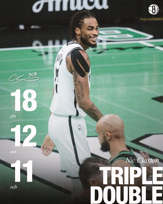 在这场大爆冷比赛中,篮网数名球员值得夸赞,其中首发中锋克拉克斯顿13中7高效贡献18分11篮板12助攻,生涯首次拿到三双数据,也成为21世纪以来篮网首位拿到三双的中锋。