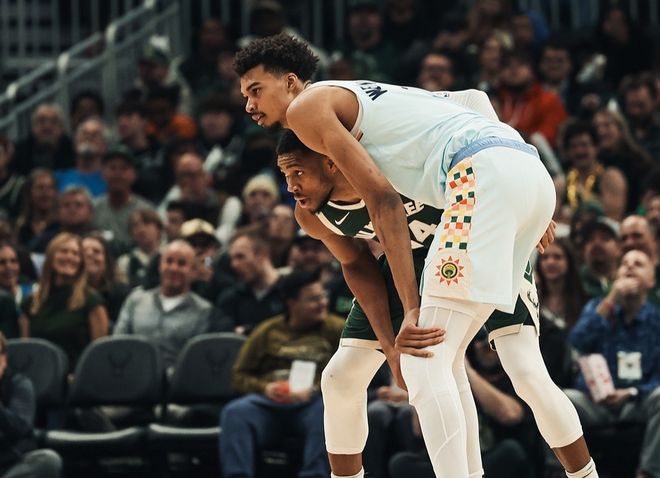 雄鹿毫无竞争力!总不能指望字母哥每场打48分钟,这不现实;但字母哥不在场时,雄鹿就是和奇才、鹈鹕一个水平!休赛期字母哥团队主动促成雄鹿和尼克斯的交易谈判,但最终不了了之,雄鹿不想放人,为了拉拢字母哥,还把字母哥二哥和五弟都签下来!但强扭的瓜不甜,字母哥确实拼尽全力,但能换回来球队战绩提升么?雄鹿二号得分点竟然是22年次轮总第44顺位的罗林斯,被勇士抛弃过,被奇才也抛弃过,到了雄鹿,蜀中无大将,廖化作先锋! 不得不说,雄鹿和字母哥的合同延续,就是一次两败俱伤的合作。