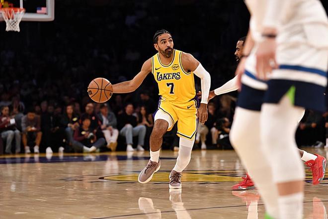 本场比赛中,湖人的替补后场大将盖布-文森特(Gabe Vincent)的表现还是值得肯定的。文森特全场出场20分14秒,投篮1中1,三分线外1中1,得到了3分1篮板1抢断的数据,还有1次失误和2次犯规,正负值为0。文森特在进攻端没有得到更多的出手机会,但是他在比赛最后一节关键时刻命中了一记三分,也算是帮助球队稳住了局面。文森特在防守端的表现也是值得肯定的,他在面对对手箭头人物劳里-马尔卡宁(Lauri Markkanen)也是能够进行有效地限制,这一点也是超出大家想象的,也能够说明他在防守端的个人能力是相当突出的。当然了,文森特在进攻端的存在感还是低了一些,他在外线投篮方面还是显得不够坚决,他也没有展现出组织和串联进攻方面的才能。总体来看,文森特的表现不算糟糕,也起到了一定的作用,但是他按理说也是有能力在场上做得更好的。
