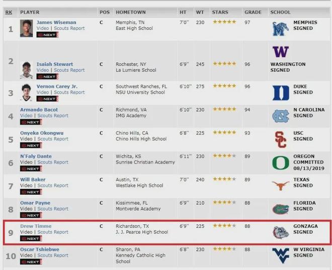 2019年德鲁高中毕业,ESPN综合评分88分四星高中生,在全美同位置中锋中排名第9,而当届排名第1的潜力中锋是大聪明怀斯曼,第2是莽牛斯图尔特,德鲁收到全美多所D1级大学招募,最终选择加盟冈萨加大学。