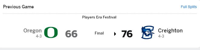 北京时间11月28日,NCAA继续进行,俄勒冈大学66-76不敌克瑞顿大学遭遇一波三连败。这场比赛中国超级新星林葳并没有得到登场机会,全场比赛林葳枯坐板凳没有被主帅Dana Altman叫到名字。