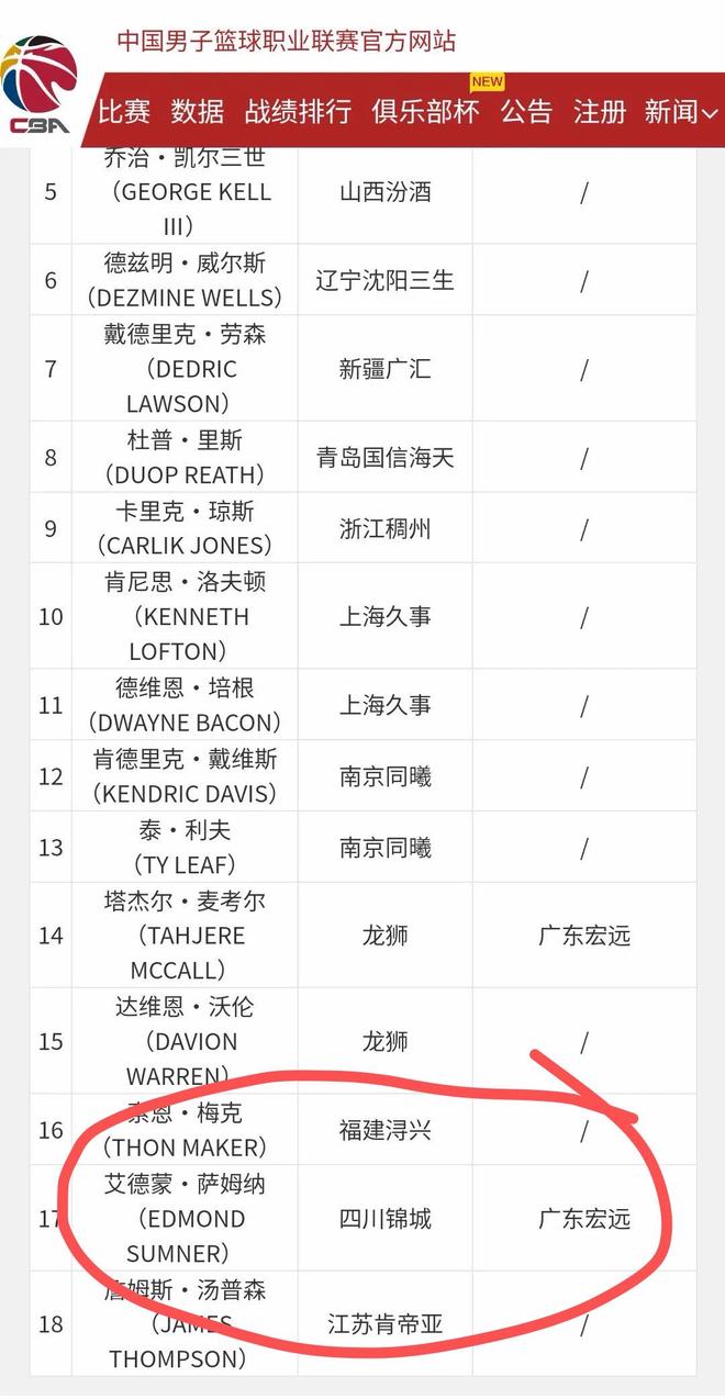 关于萨姆纳加盟宏远一事,在各大CBA论坛早就不是什么秘密。包括萨姆纳本人在内,在个人社交媒体或暗示或明示,各种点赞自己加盟广东的动态,各种与宏远球迷互动并承诺“不久后便会加盟”。不过由于四川男篮一直忙于新赛季准入一事,没有功夫腾出手来处理萨姆纳的签约权。此前有媒体报道,四川男篮参加新赛季CBA问题基本不大,萨姆纳的签约权则被正式放到谈判桌上,各支球队争相报价。