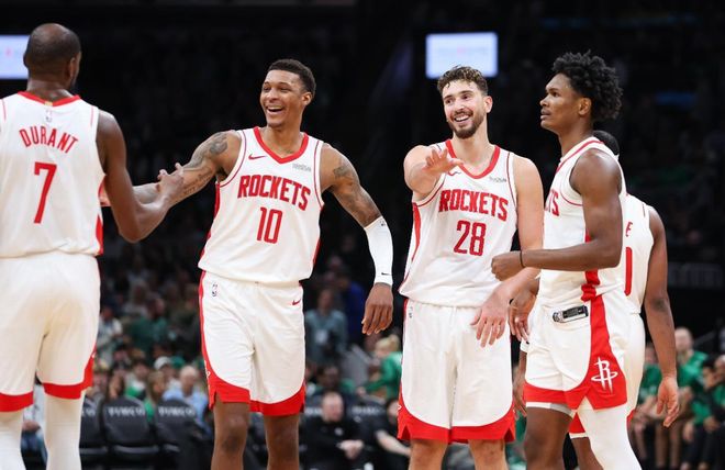 新赛季NBA常规赛开打一个多月,有三支球队的百回合净效率值在+10以上,放在过去任何赛季,这都是当赛季最大夺冠热门,但本赛季竞争确实激烈,而且还都在西部。他们分别是雷霆(百回合净效率值+16.2)、火箭(净效率值+10.9)以及掘金(净效率值+10.0)。雷霆上赛季夺冠后,年轻人自信心提升,亚历山大保底,他们有很大概率寻求卫冕;掘金则依靠约基奇强大的统治力拔高下限,约基奇本赛季PER值36.7也已经刷新历史纪录。而火箭比较有趣,开赛以来饱受伤病困扰,范乔丹重伤,芬尼史密斯打不了,甚至杜兰特都因家事连续缺席。