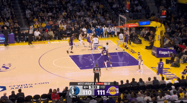 这场比赛焦点太多了,不仅是一场常规赛,还是NBA杯小组赛最后一场;浓眉复出,第一次穿着独行侠球衣客场打湖人;东契奇则是本赛季第一次打老东家;场边大佬也非常多,欧文观战,韦德担任解说,还采访了昔日队友詹姆斯——以上出现的这些名字,个个都是历史级别的巨星。