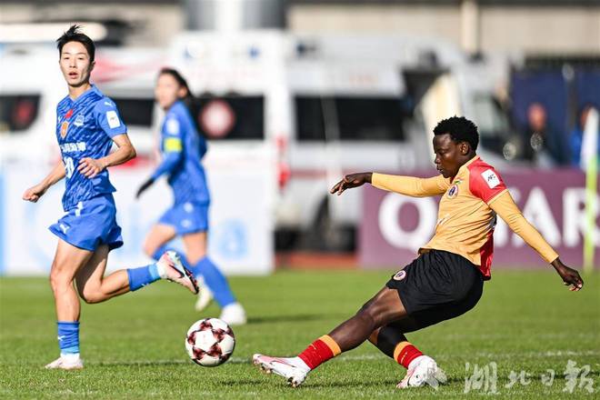11月20日,武汉车谷江大女足外援奥乌苏带球突破。(湖北日报全媒记者任勇摄)