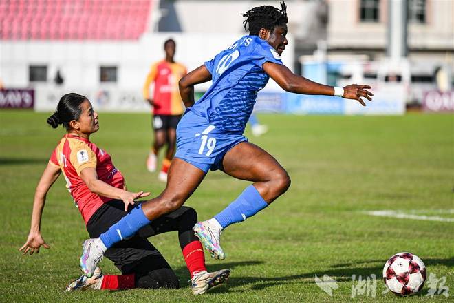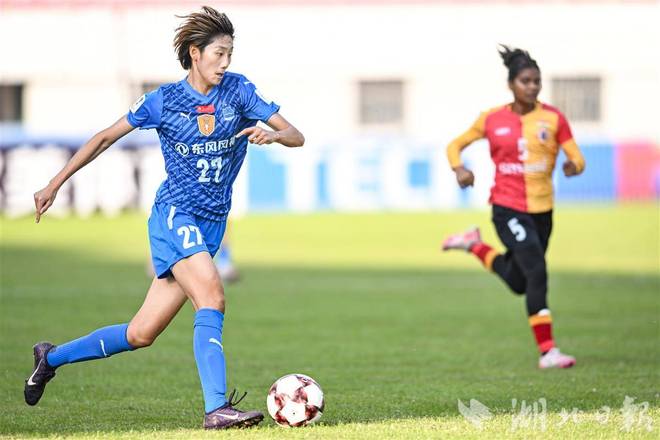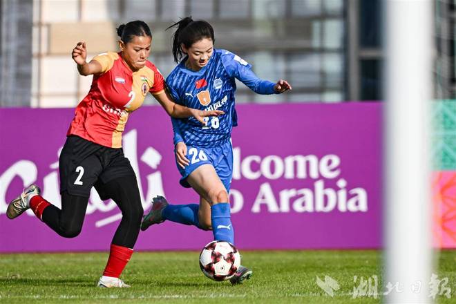 11月20日下午,2025/2026赛季亚足联女子冠军联赛B组第二轮比赛在武汉汉口文体中心打响,武汉车谷江大女足迎战印度的东孟加拉女足。首发出场的女足“一姐”王霜梅开二度,帮助武汉车谷江大女足2-0力克东孟加拉女足。(湖北日报全媒记者任勇摄)