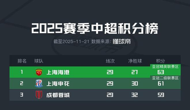 海港领先成都4分,这让他们至少已经确保可以获得下赛季亚冠资格。只要末轮取分,他们将在夺冠的同时锁定下赛季亚冠精英联赛的直通名额。