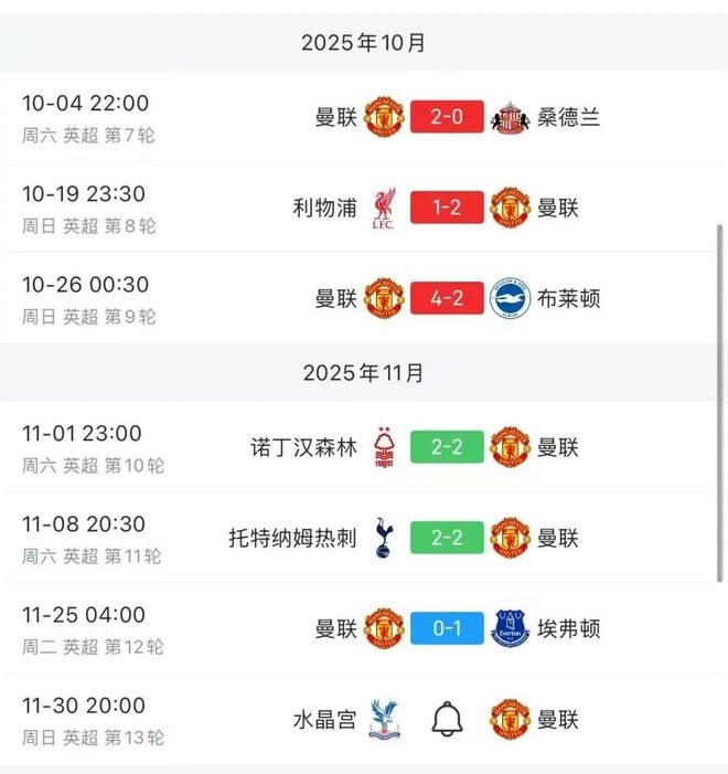 阿莫林与曼联在10月有多辉煌(3战全胜),11月就有多黯淡(3场不胜)。