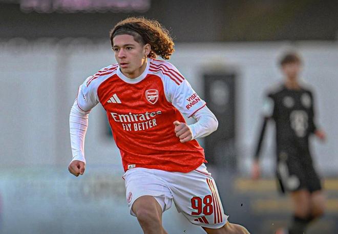 北京时间11月26日,阿森纳U19在青年欧冠联赛阶段第5轮的比赛中4-2战胜了拜仁慕尼黑U19,此战15岁的道曼完成了梅开二度表现抢眼,不过在这场U19级别的比赛中,枪手阵中出现了一名比道曼更年轻的天才。