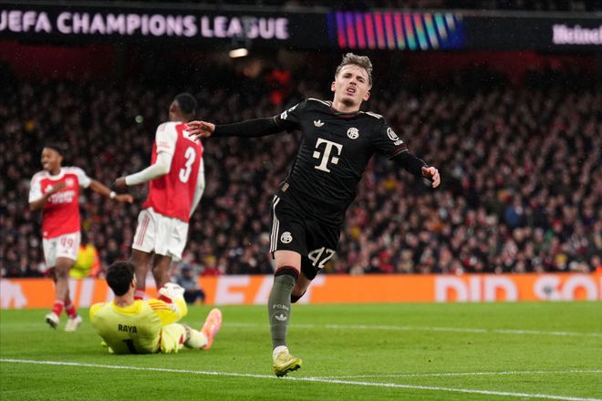 第22分钟,萨卡开出角球,廷贝尔在人群中机敏一点,诺伊尔被晃了个通透,皮球应声入网。不过,拜仁“伦敦之王”的头衔可真不是虚的,10分钟后便用一次迅猛的反击将阿森纳的坚固防线捅了个通透,小将卡尔一蹴而就,将皮球送进了拉亚身后的球门。