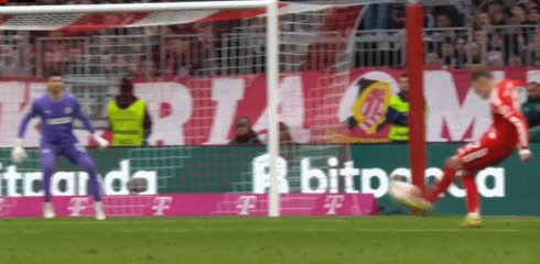 第93分钟,基米希右路斜传,迪亚斯头球冲顶破门,2比1!