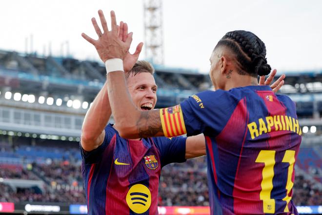 首发打满全场的奥尔莫在本场比赛当中攻入了巴萨的后两个进球,从而用一次梅开二度的表现帮助巴萨成功全取三分。
